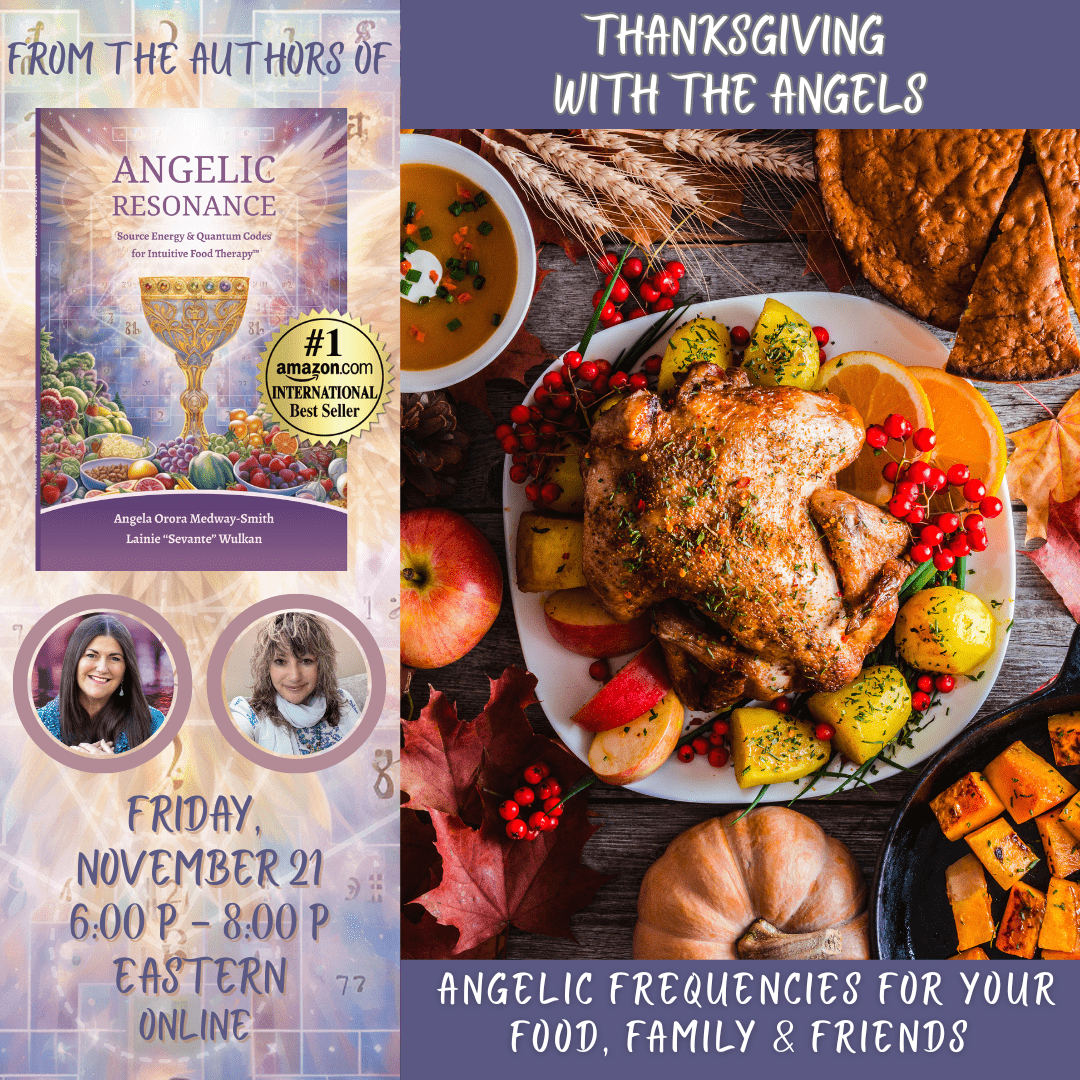 Join Bestselling Authors of Angelic Resonance, Angela Orora Medway-Smith and Lainie Sevante Wulkan for a special class, one week before Thanksgiving to elevate your celebration to new angelic heights.